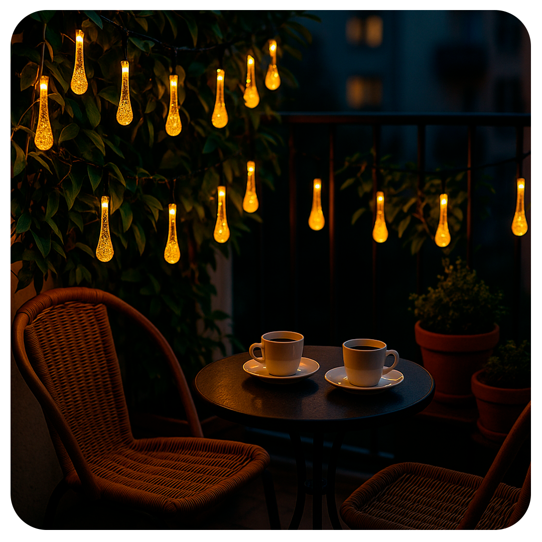 1️⃣ Colocás la guirnalda donde te guste: balcón, baranda, reja, plantas, pérgola o ventana.